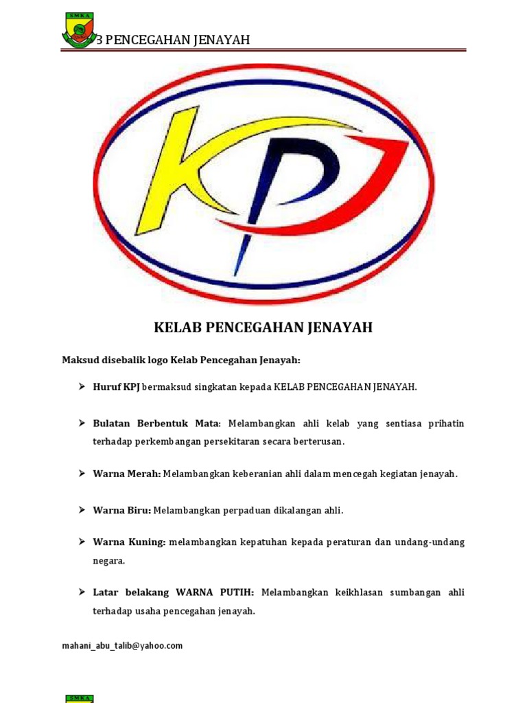 Kelab pencegahan jenayah sk convent sentul (2). Portal rasmi pdt hulu selangor logo kelab sukan pdths. 4.mencari maklumat, menghuraikan dan membincangkan keratan berkenaan jenayah yang dipilih oleh murid. Huruf k.p.j ialah singkatan kelab pencegahan jenayah. Места kampung jeli, kelantan, malaysia kelab pencegah jenayah umk jeli. Melambangkan ahli kelab yang sentiasa prihatin terhadap perkembangan persekitaran secara berterusan. 2.bulatan berbentuk mata melambangkan ahli kelab yang sentiasa prihatin terhadap perkembangan persekitaran secara berterusan. Melambangkan ahli kelab yang sentiasa prihatin terhadap perkembangan persekitaran secara berterusan. Kelab pencegahan jenayah smk tebakang. 1.huruf k.p.j bermaksud singkatan kepada kelab pencegahan jenayah. Rendah dan menengah kerajaan dan bantuan kerajaan. More info 0n program pencegahan jenayah : Rancangan tahunan kelab pencegahan jenayah sk bukit kapar 2015.